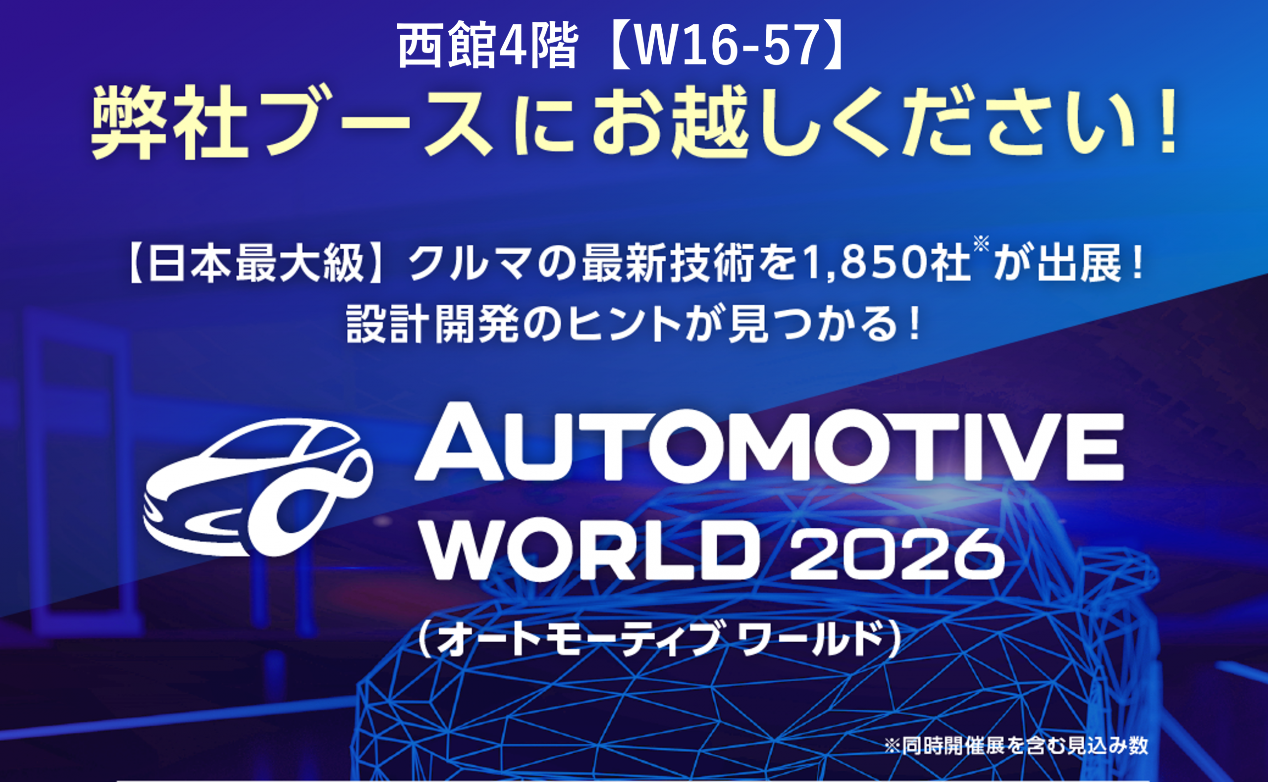 「オートモーティブワールド 2026」出展のお知らせ 弊社は2026年1月21日から1月23日までオートモーティブワールド(東京ビックサイト)に出展いたします。量産最速立上げ・中ロット安心納品・アーリーステージコラボレーションの、ご提案や技術相談を行いながらの商談サービスもございます。西館4階【W16-57】の弊社ブースでご来場をお待ちしております。 この記事をシェアする